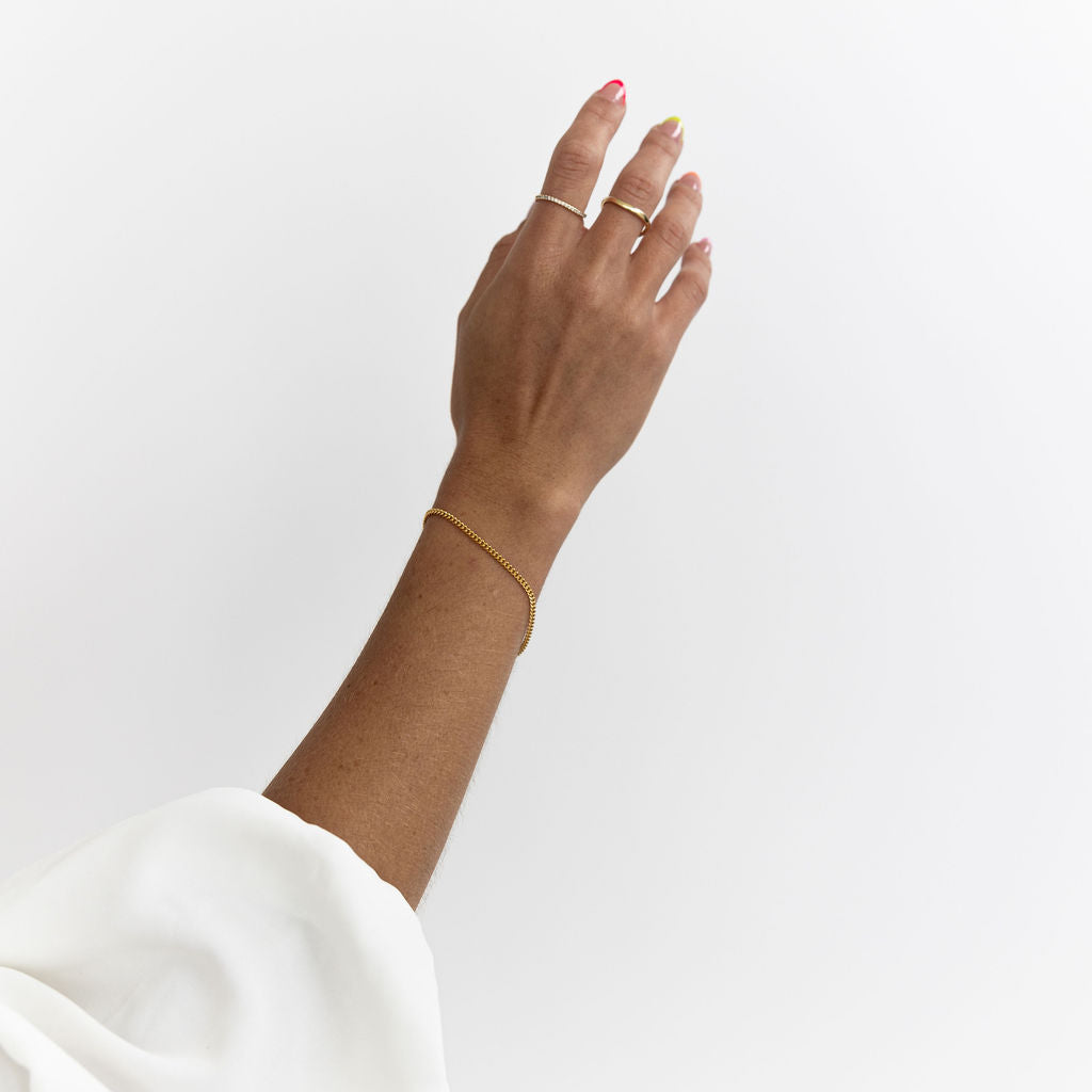 Introducing Luca Mini, a timeless mini cuban link chain crafted from 14K Gold Filled  material, designed for everyday wear. Its versatility shines as it effortlessly compliments layered styles and is a perfect blend of bold and dainty.