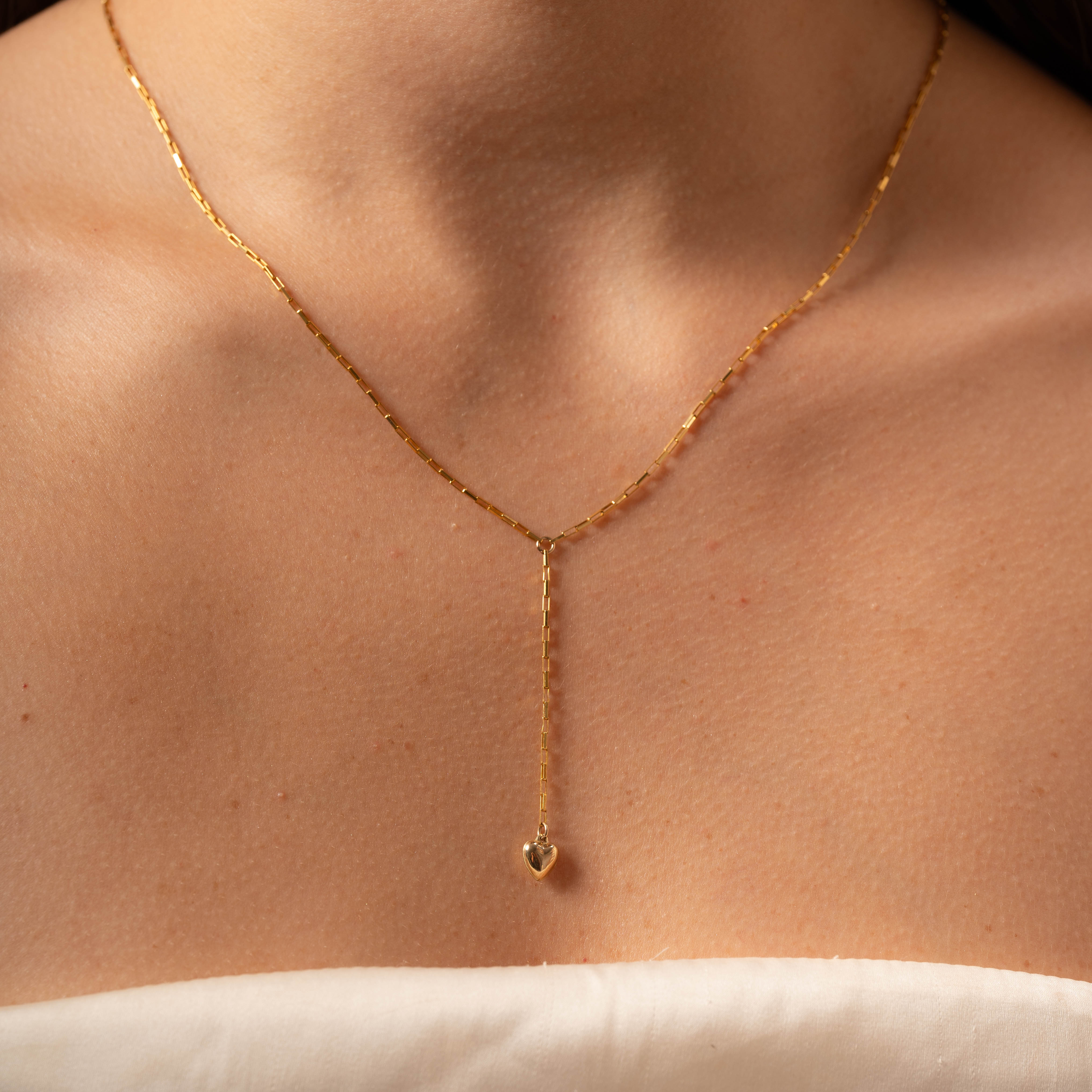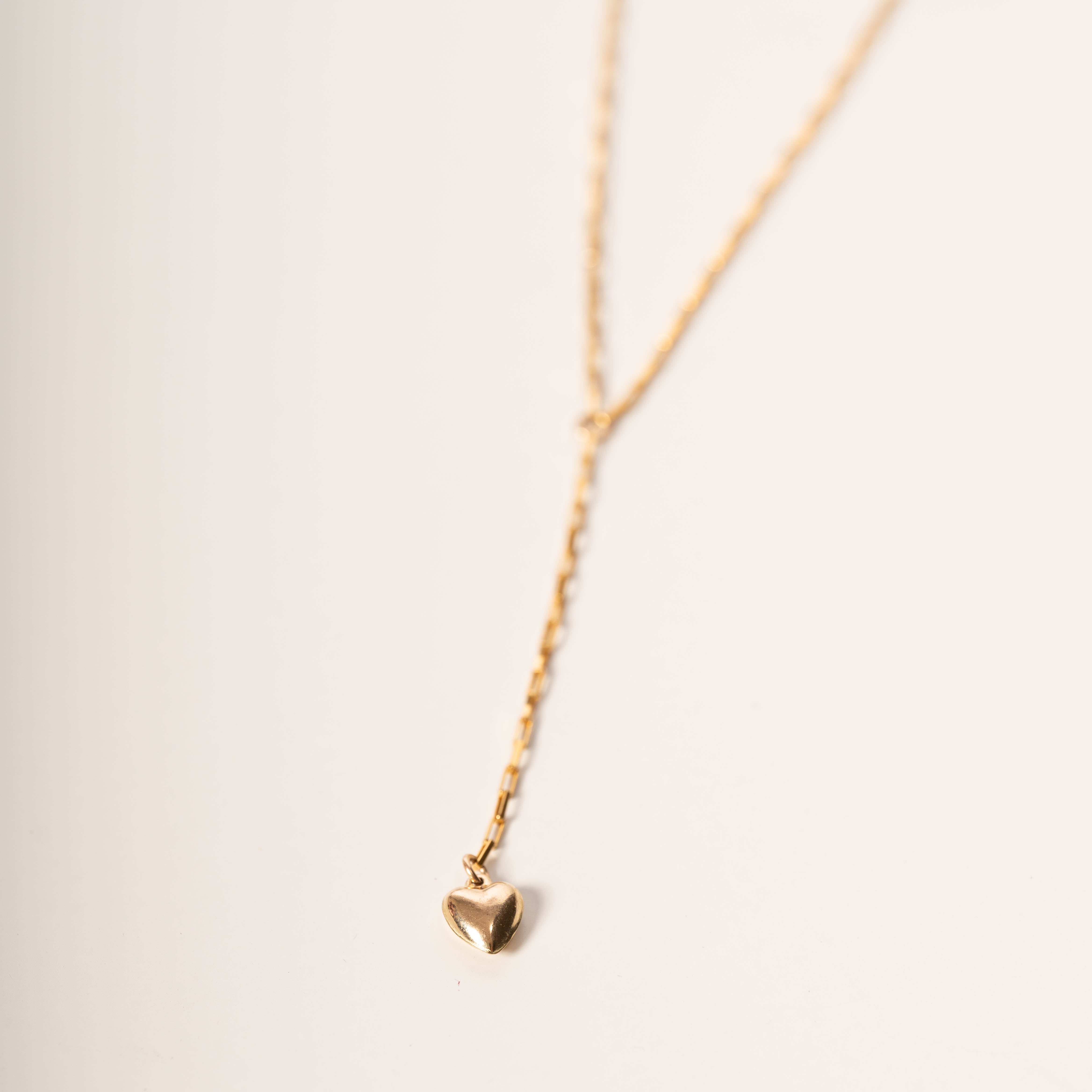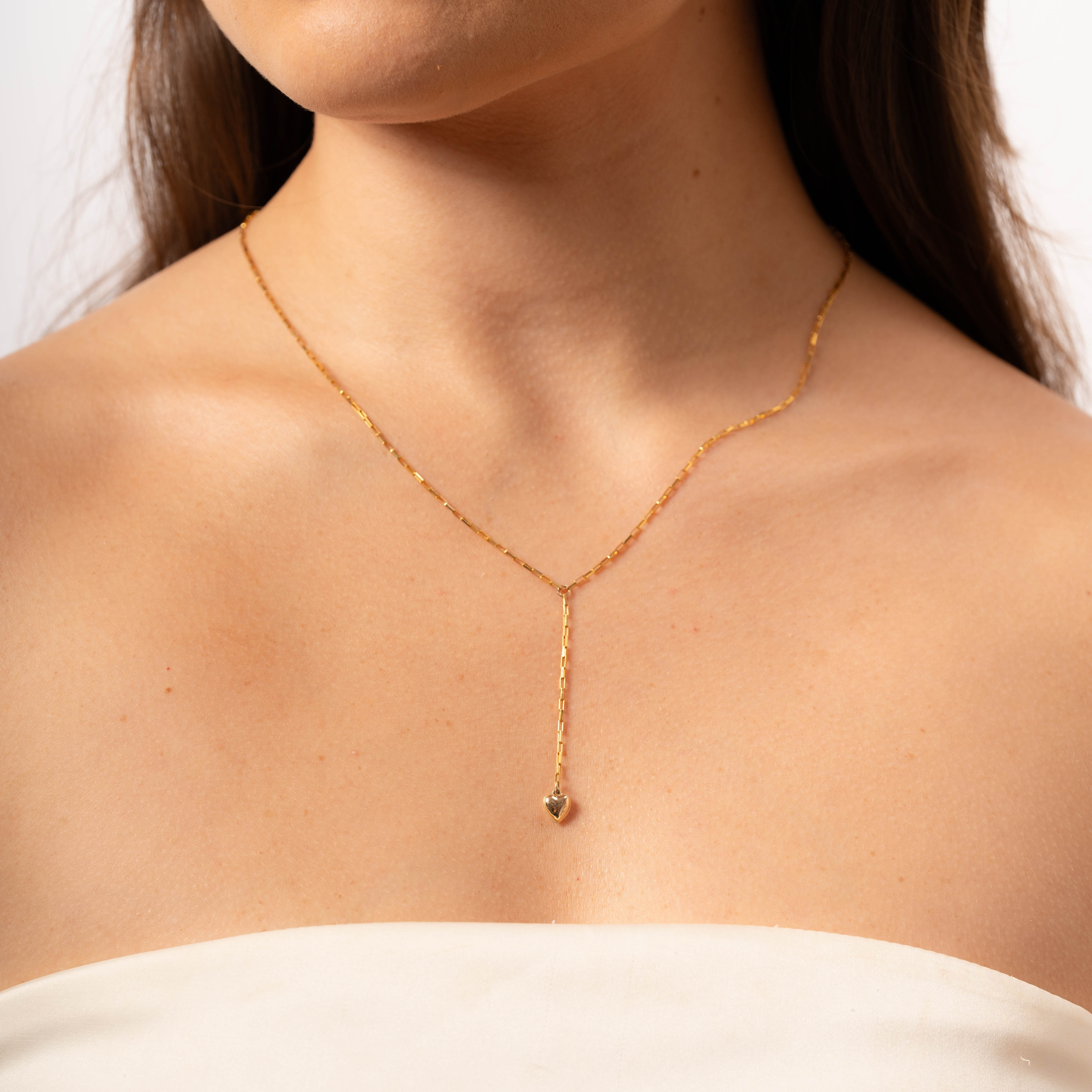 Infuse a touch of romance into your jewelry collection with our Heart Lariat Necklace. This delightful piece features a charming puffy heart on our popular Drue chain, creating a sweet and versatile accessory. Adorn your neckline with this heartwarming lariat, perfect for adding a playful yet elegant touch to any outfit.