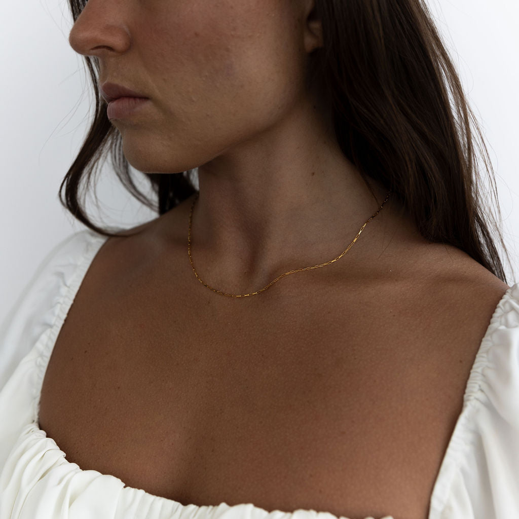 Bold and striking, the Drue Necklace draws inspiration from our frankie chain, renowned for its popularity. With thick mini cable links artfully stretched, it transforms into a stunning standalone piece or a great versatile choice for layering.