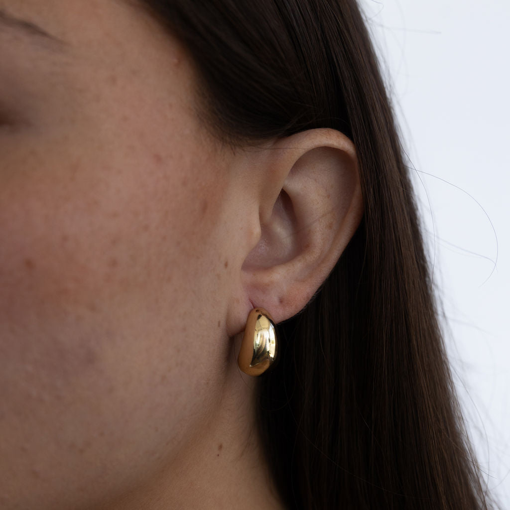 These chunky gold dome earrings make a bold yet refined statement. With their smooth, rounded shape and polished finish, they’re the perfect blend of modern edge and timeless elegance.