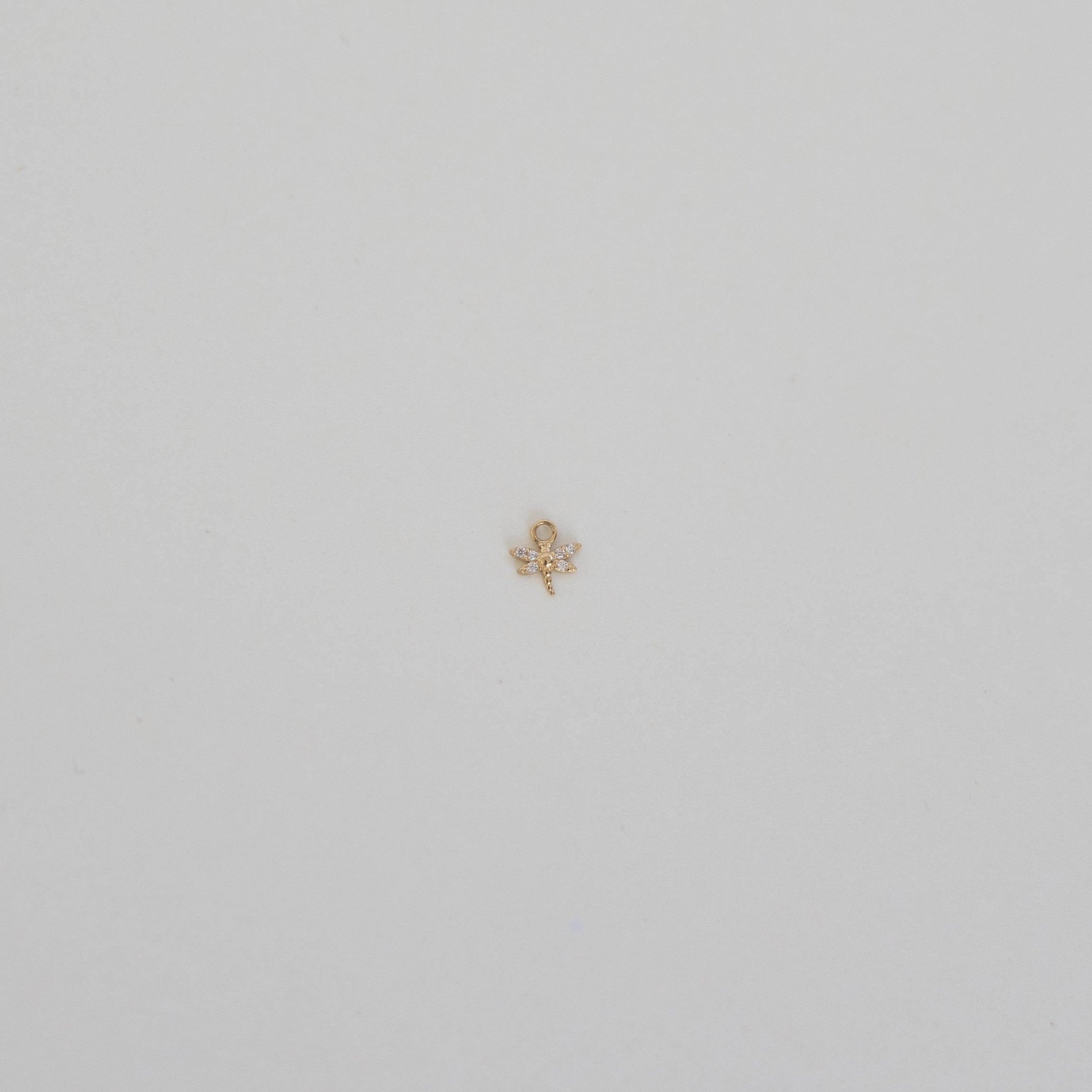 A dainty 14k gold dragonfly charm adorned with sparkling stones.