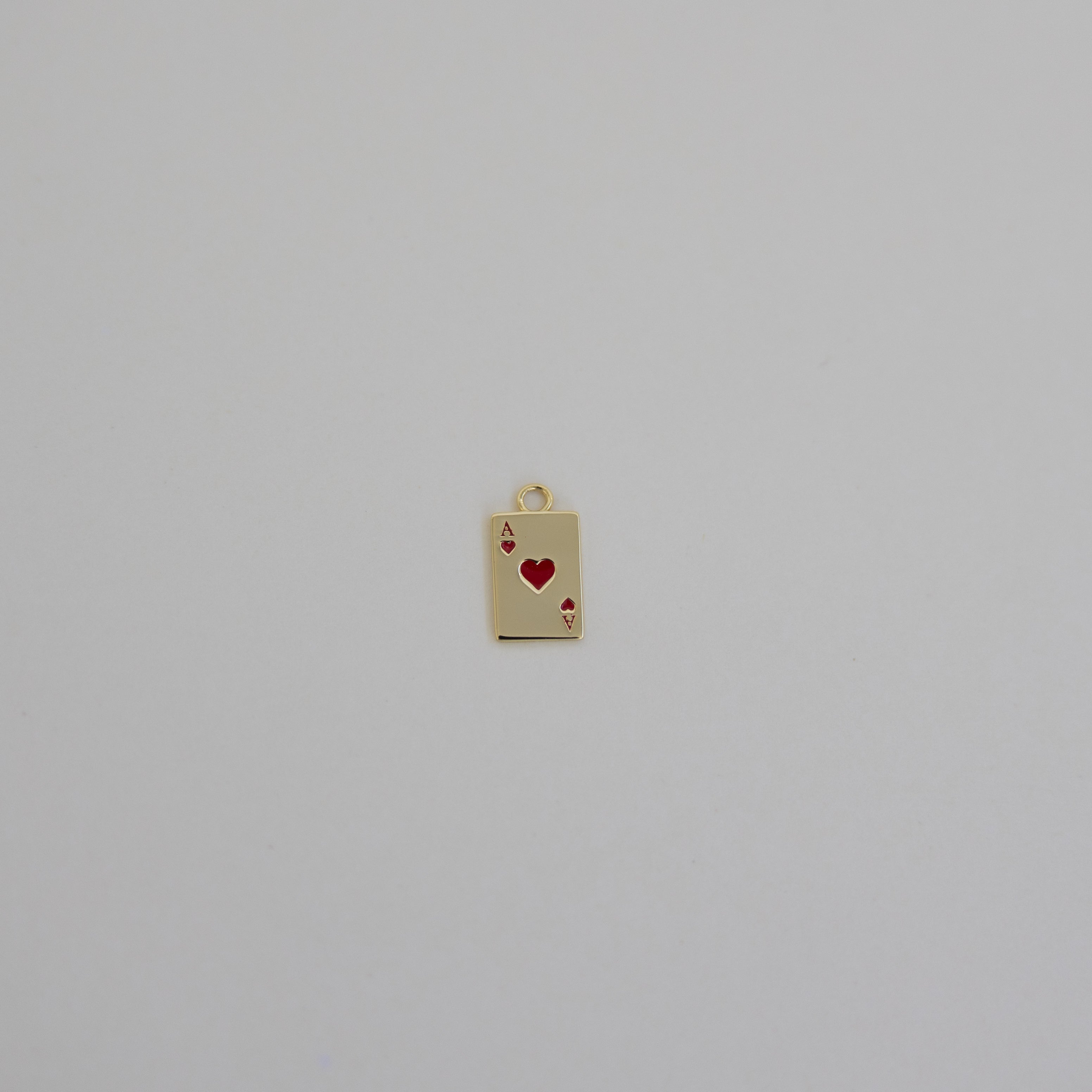 Add a touch of luck and elegance to your collection with this gold Ace of Hearts charm, featuring intricate red enamel details.
