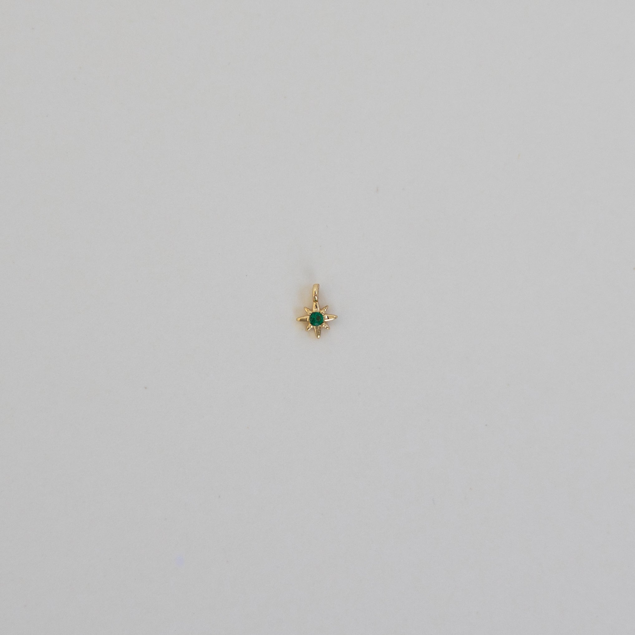 A delicate gold starburst charm featuring a radiant gemstone at its center for a touch of celestial elegance.