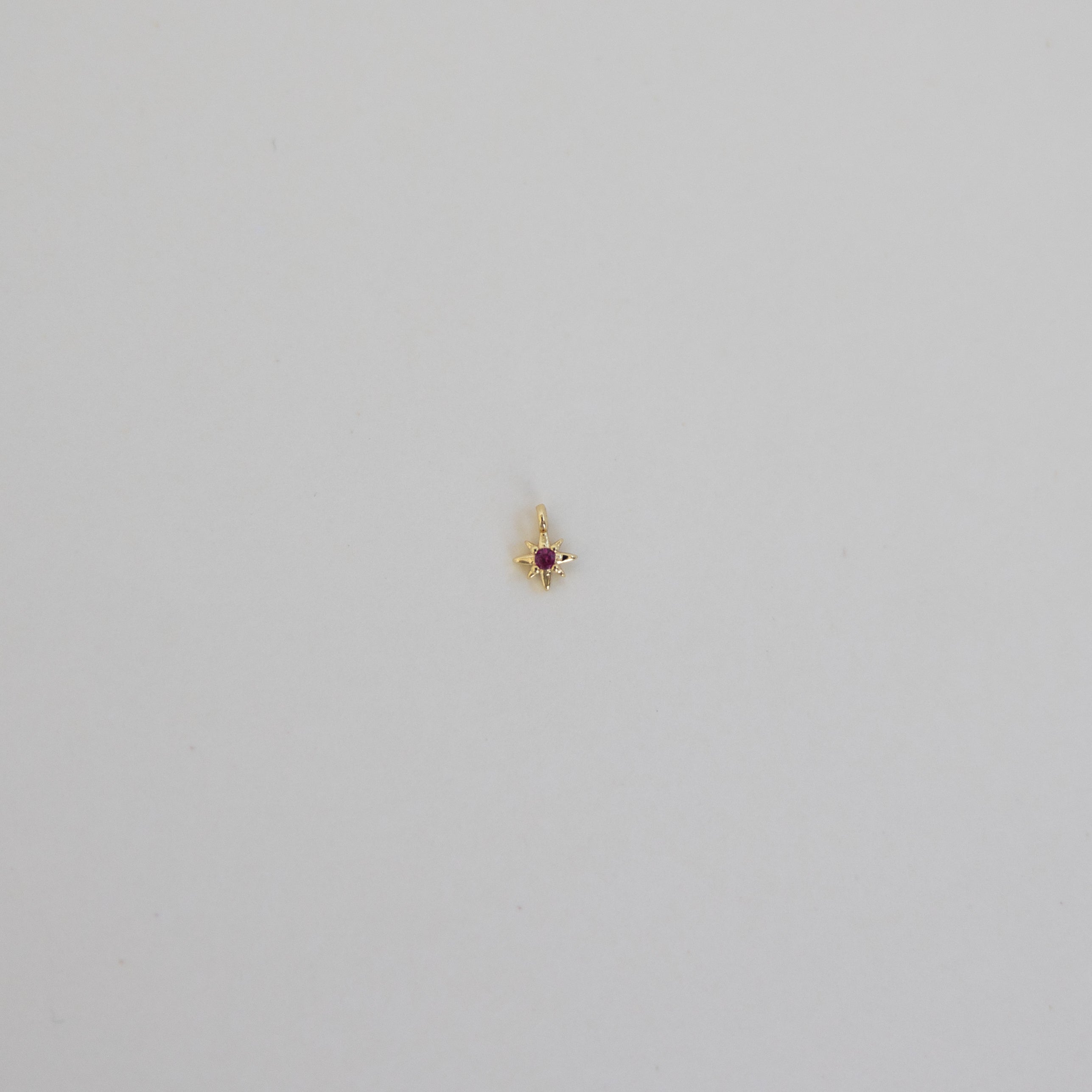 A delicate gold starburst charm featuring a radiant gemstone at its center for a touch of celestial elegance.