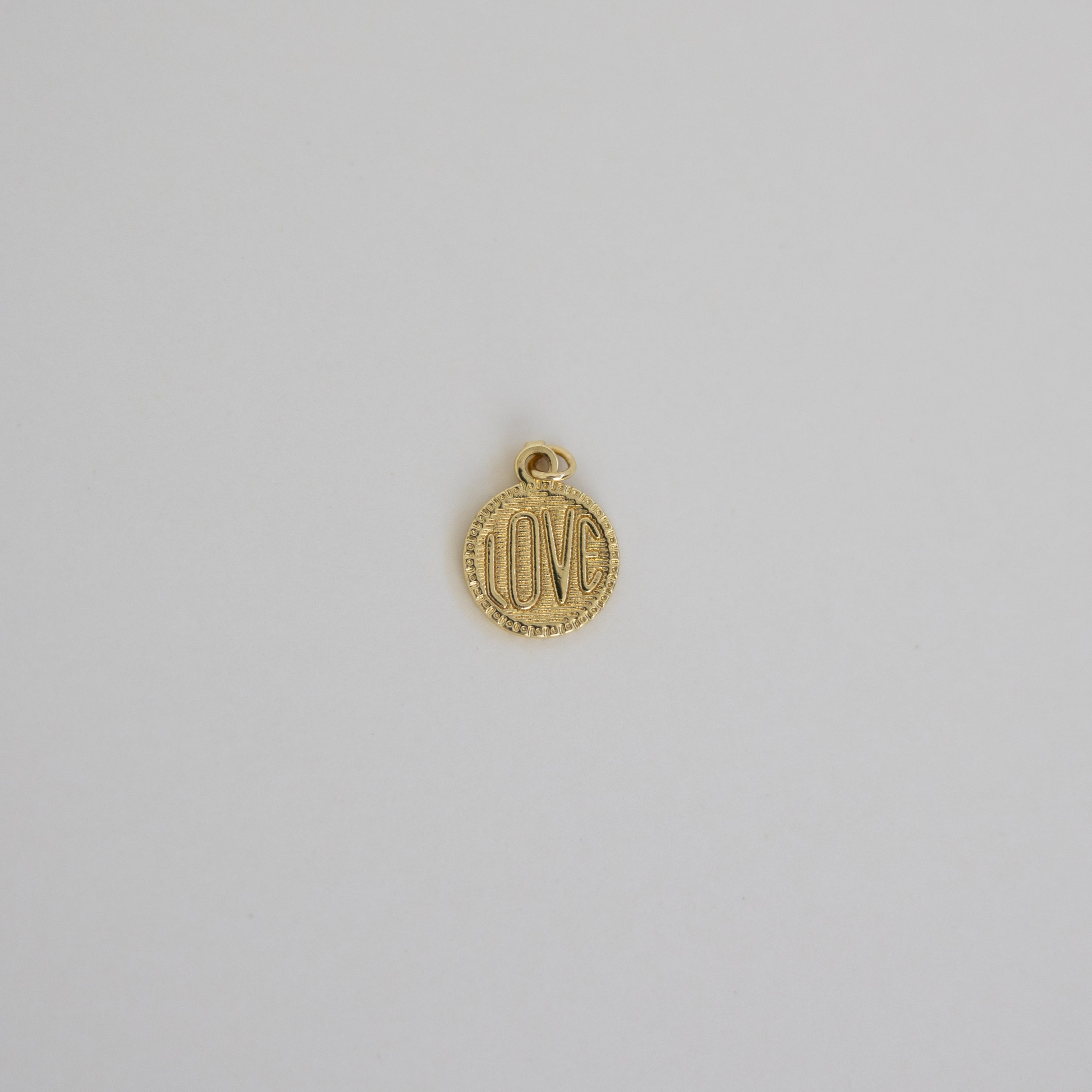 Spread the love with this playful gold charm, featuring a bold, textured "LOVE" design for a timeless statement.