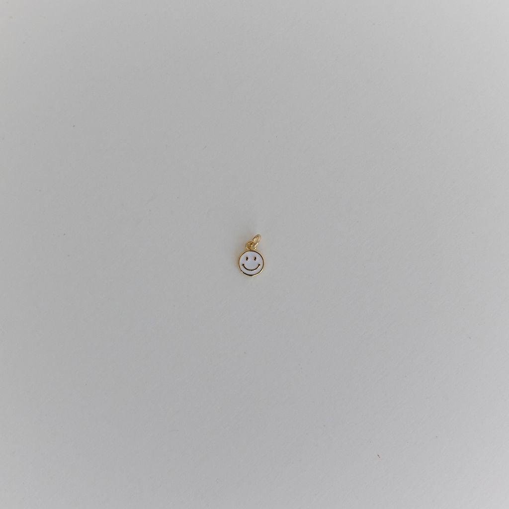 Brighten your day with this charming gold smiley face charm, featuring a soft white enamel finish for a fun and playful touch to any jewelry collection.
