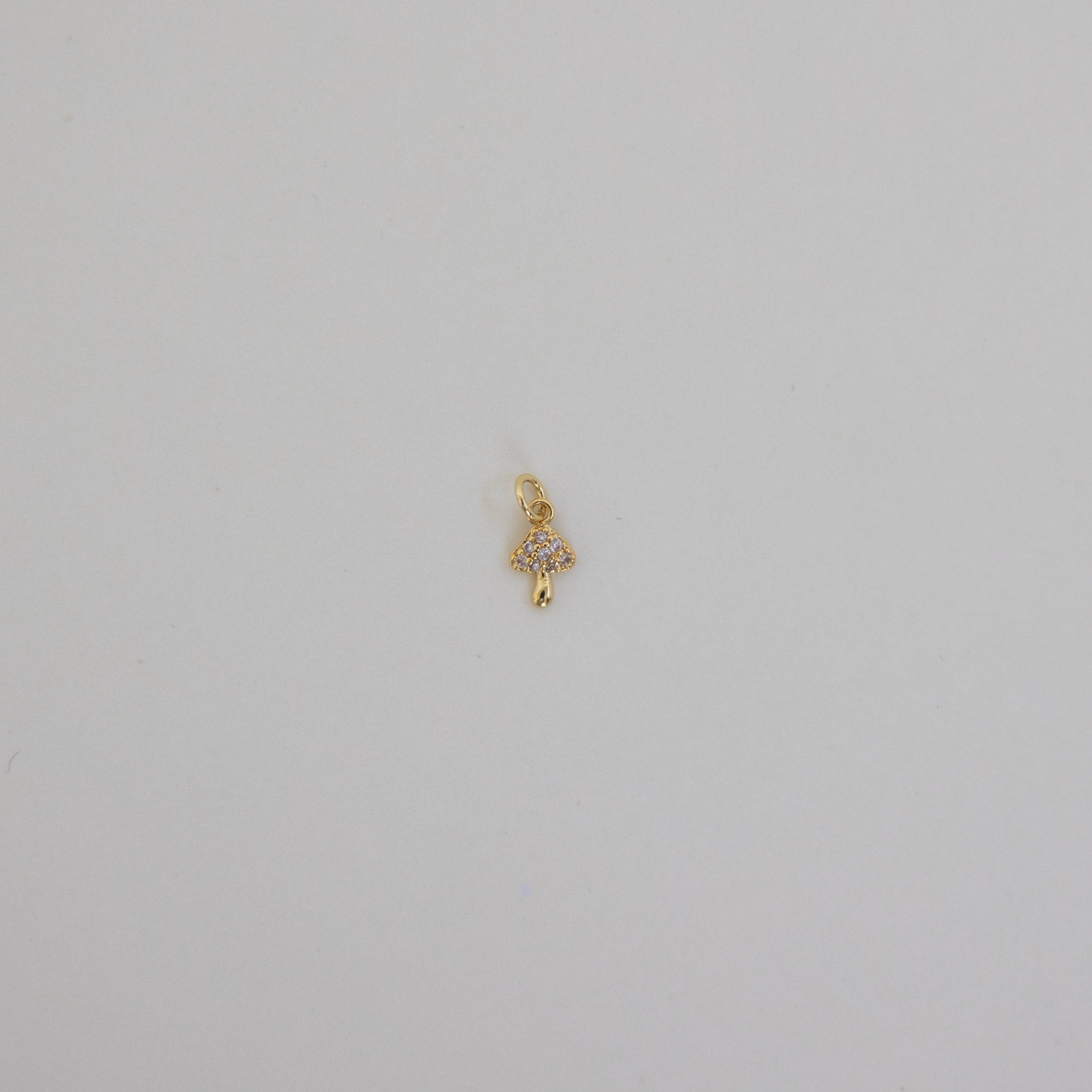 Add a whimsical touch to your jewelry with this gold pavé mushroom charm.
