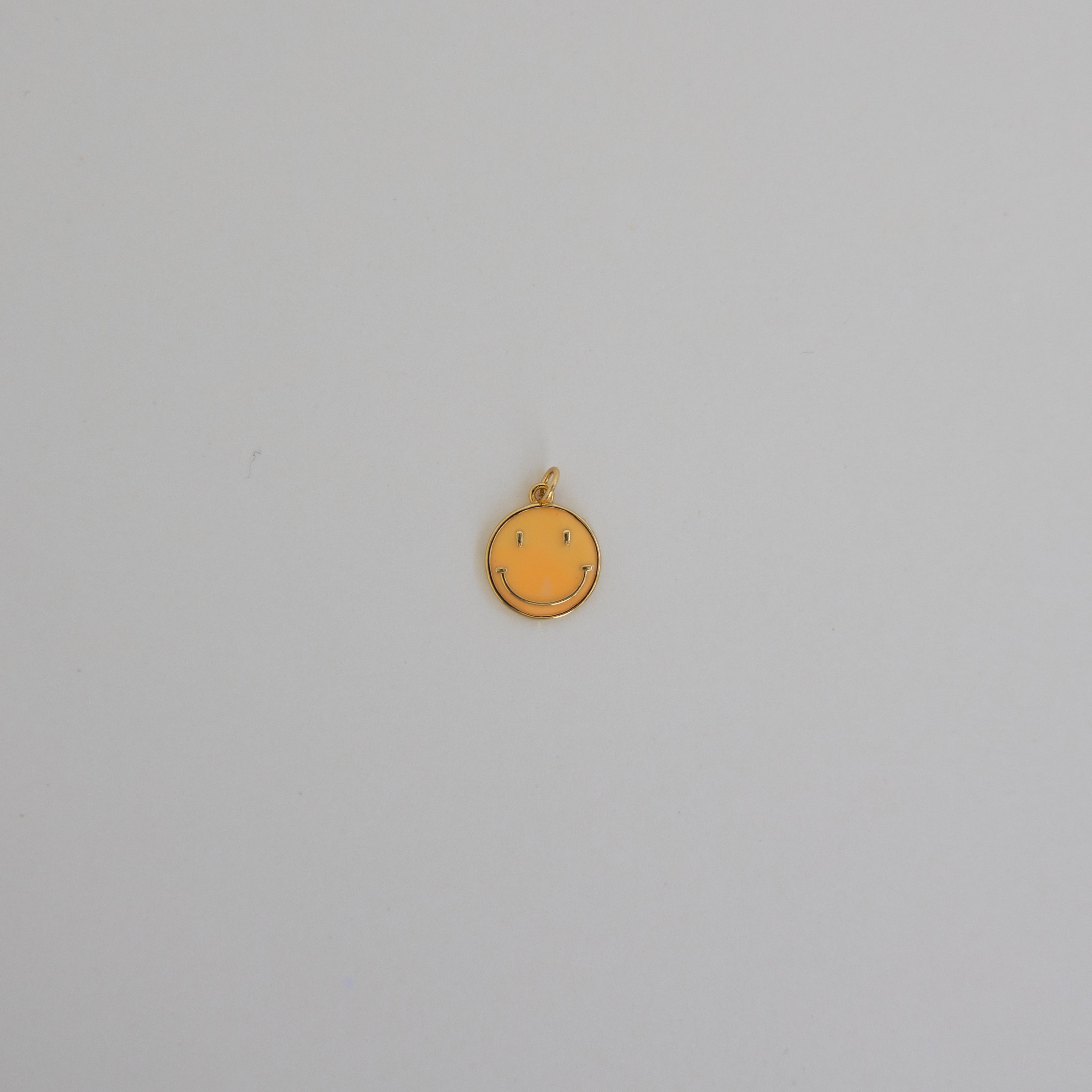 Brighten your day with this charming gold smiley face charm, featuring a soft orange enamel finish for a fun and playful touch to any jewelry collection.