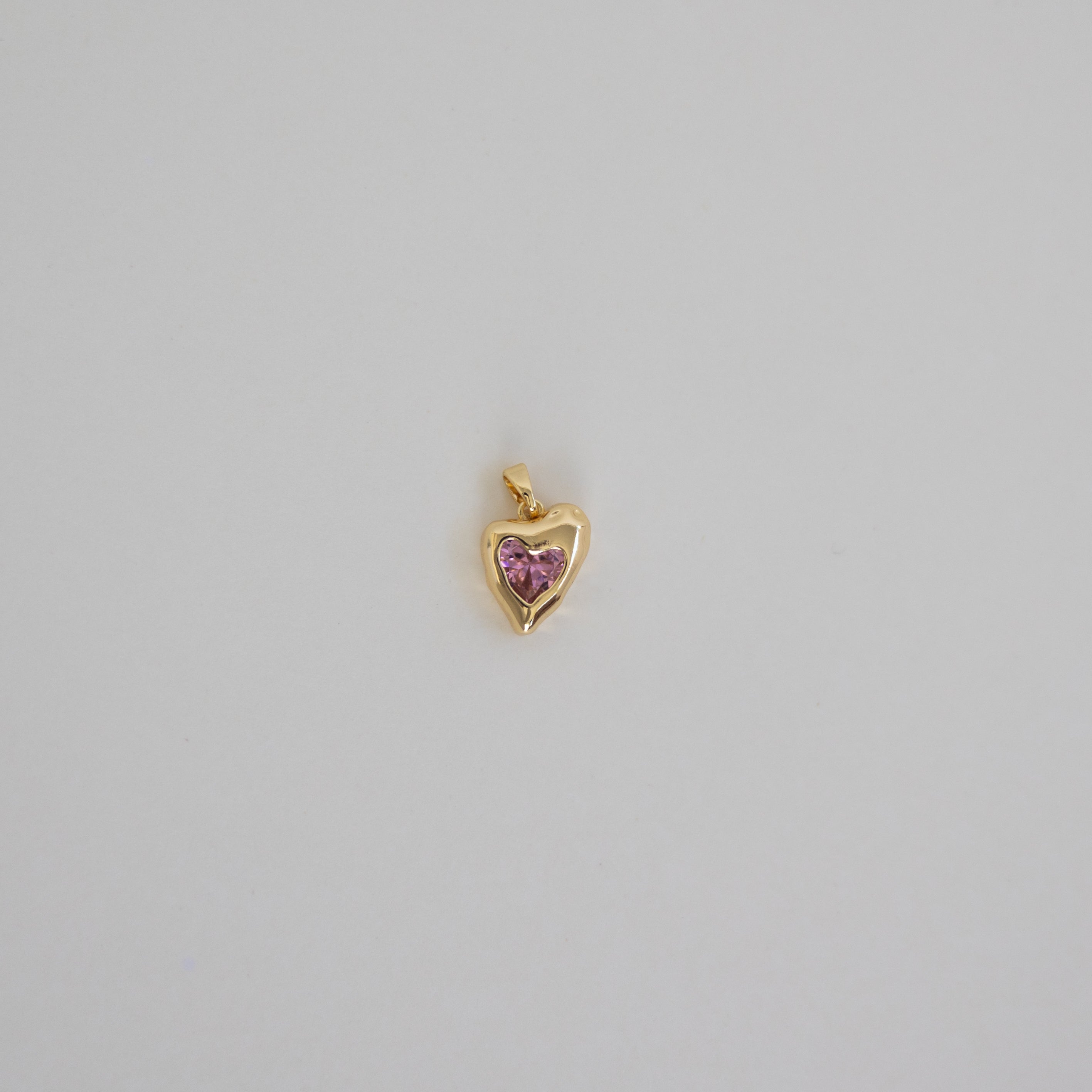 This dainty gold heart charm features a pink cubic zirconia, adding a touch of love and elegance to any jewelry collection.