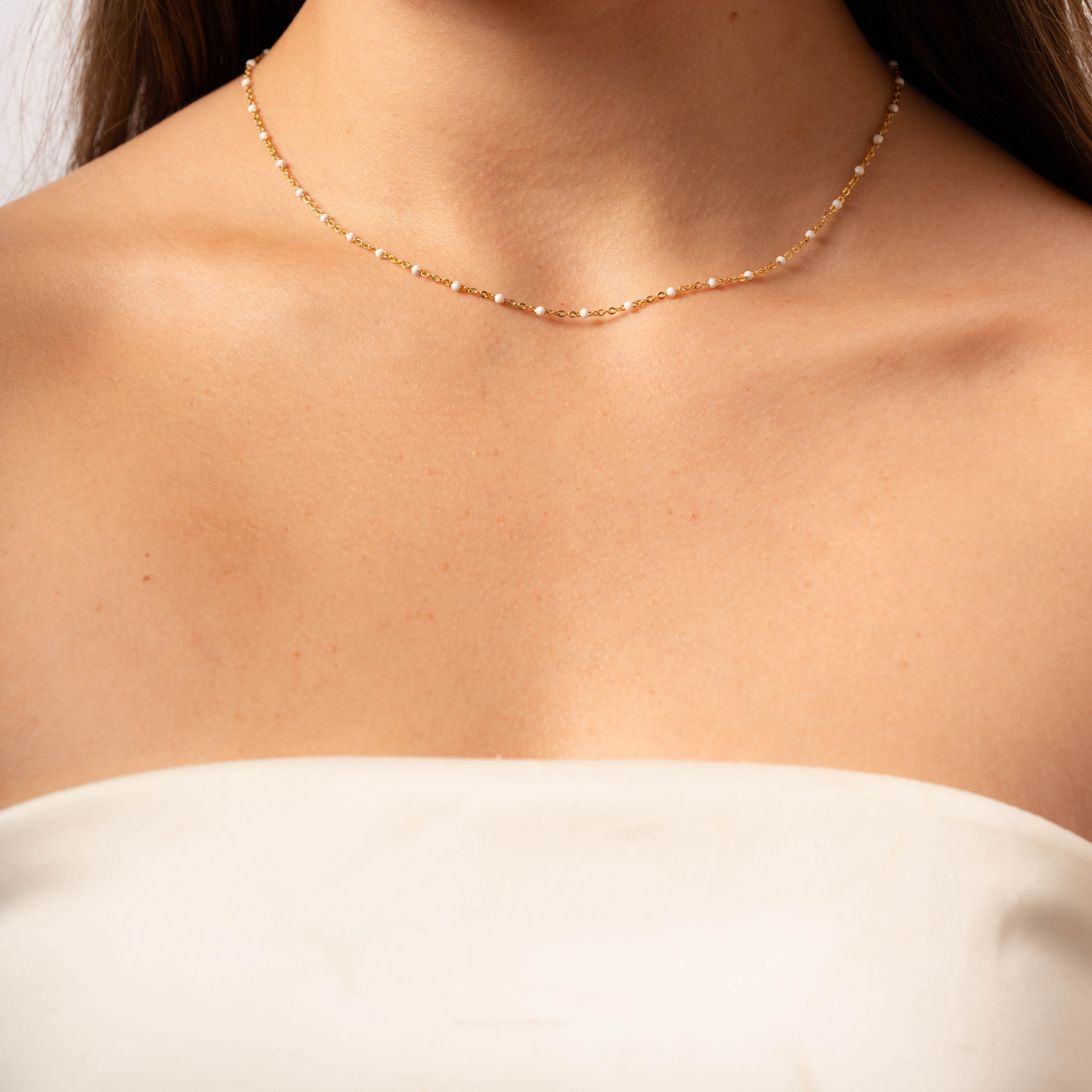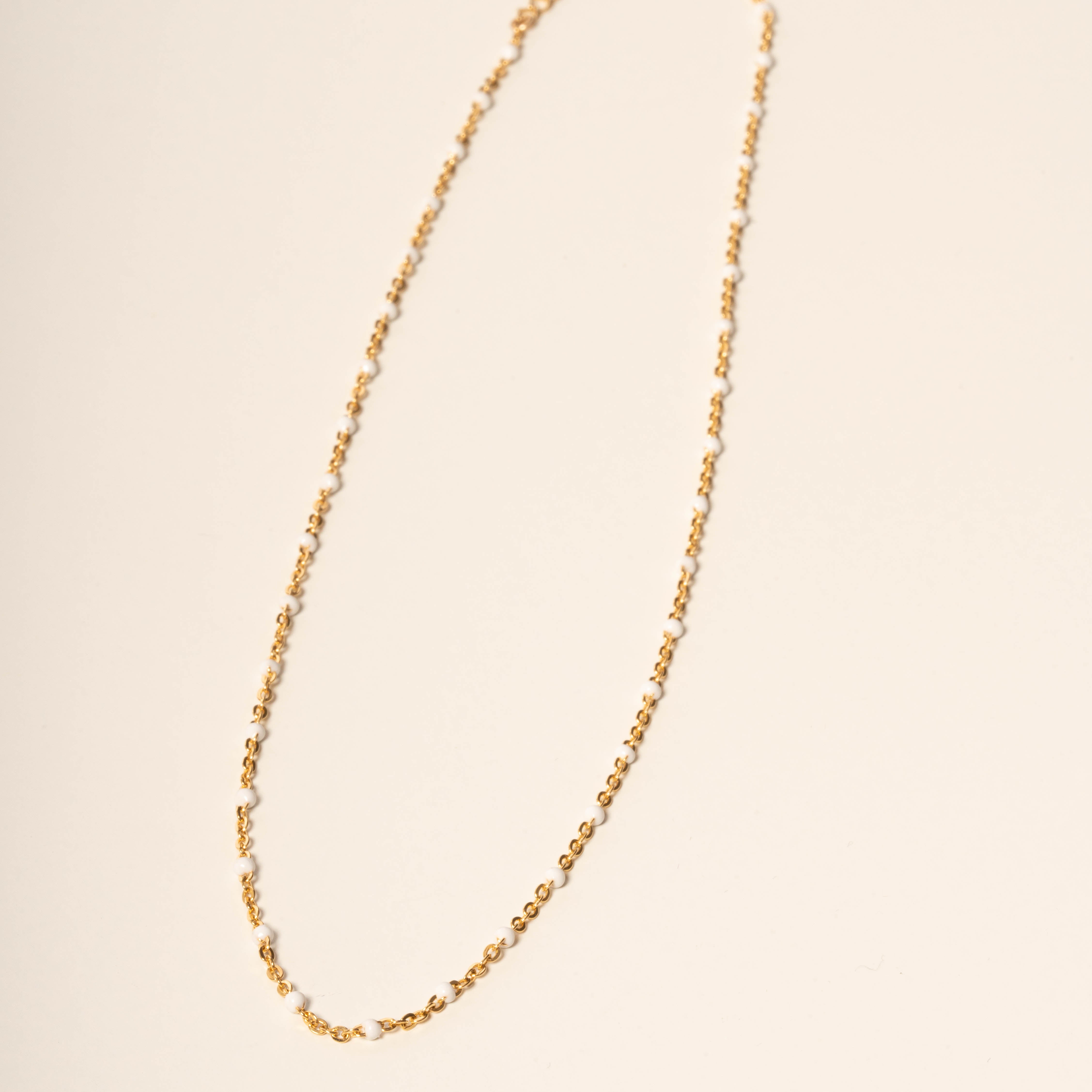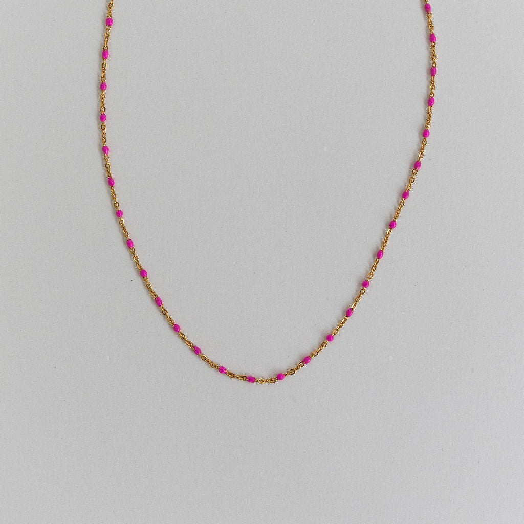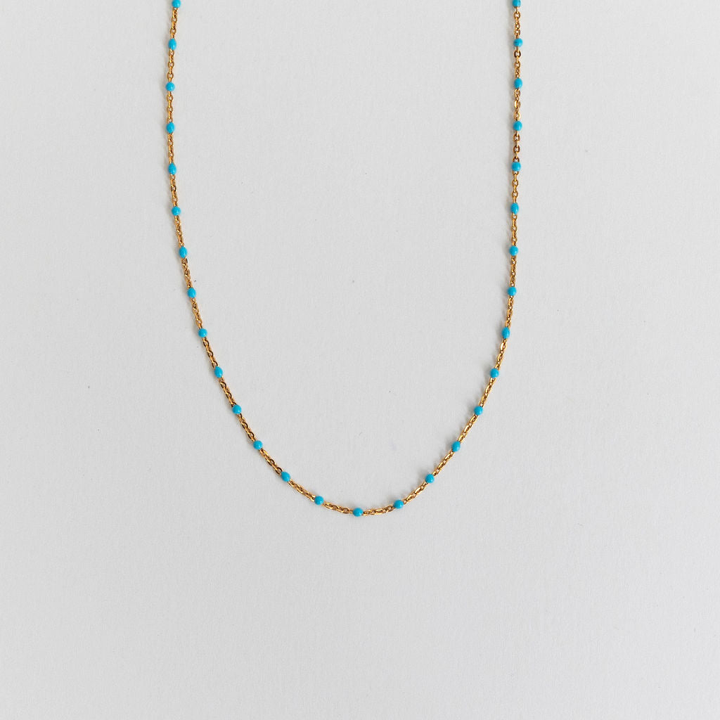 Meet Lily – designed for versatility, this 14k Gold Filled chain effortlessly adapts to your style. Whether worn alone for a fresh and modern look or layered with other necklaces, you have the option to choose from green, white, black, purple or turquoise enamel beads, giving you the flexibility to create the perfect accent for any occasion.