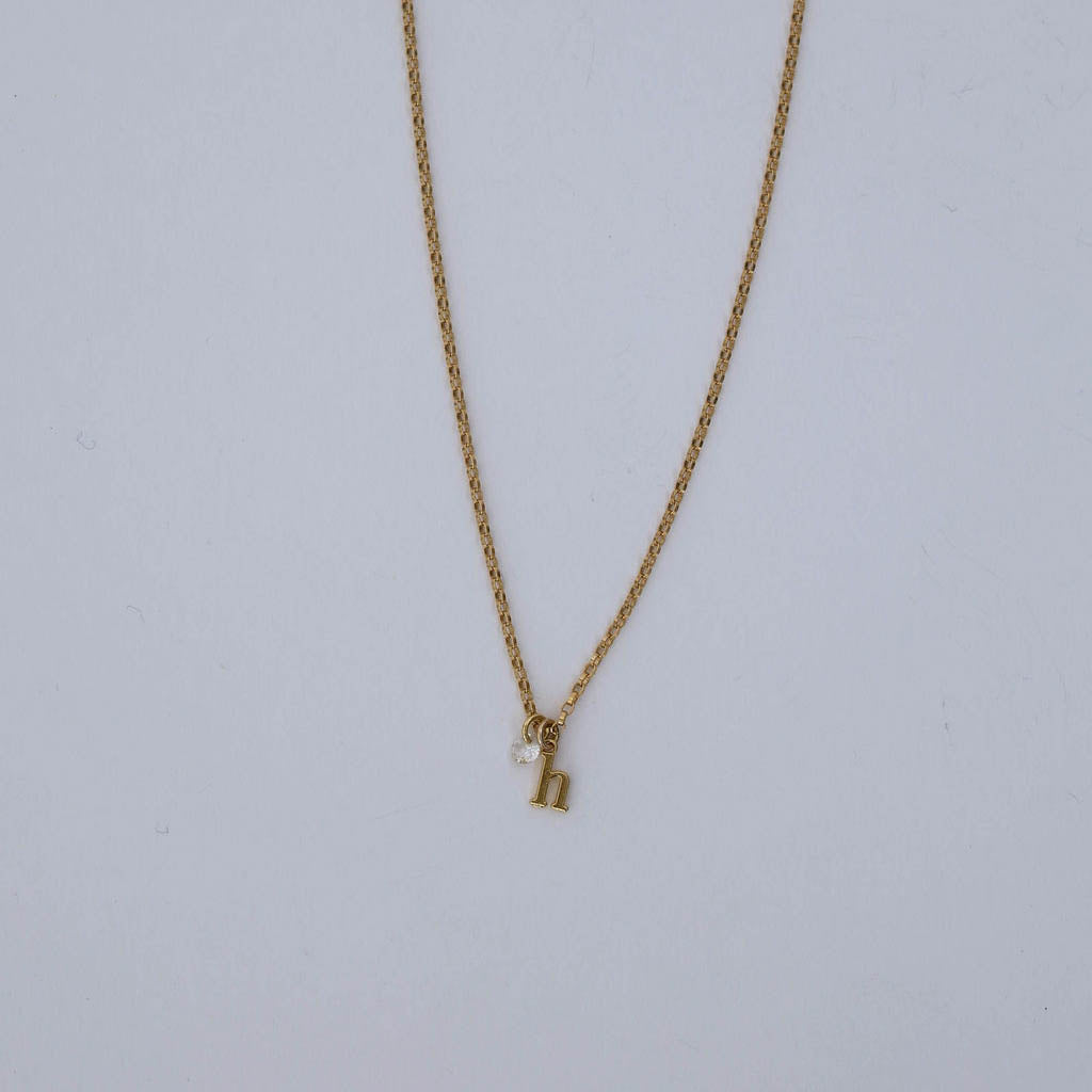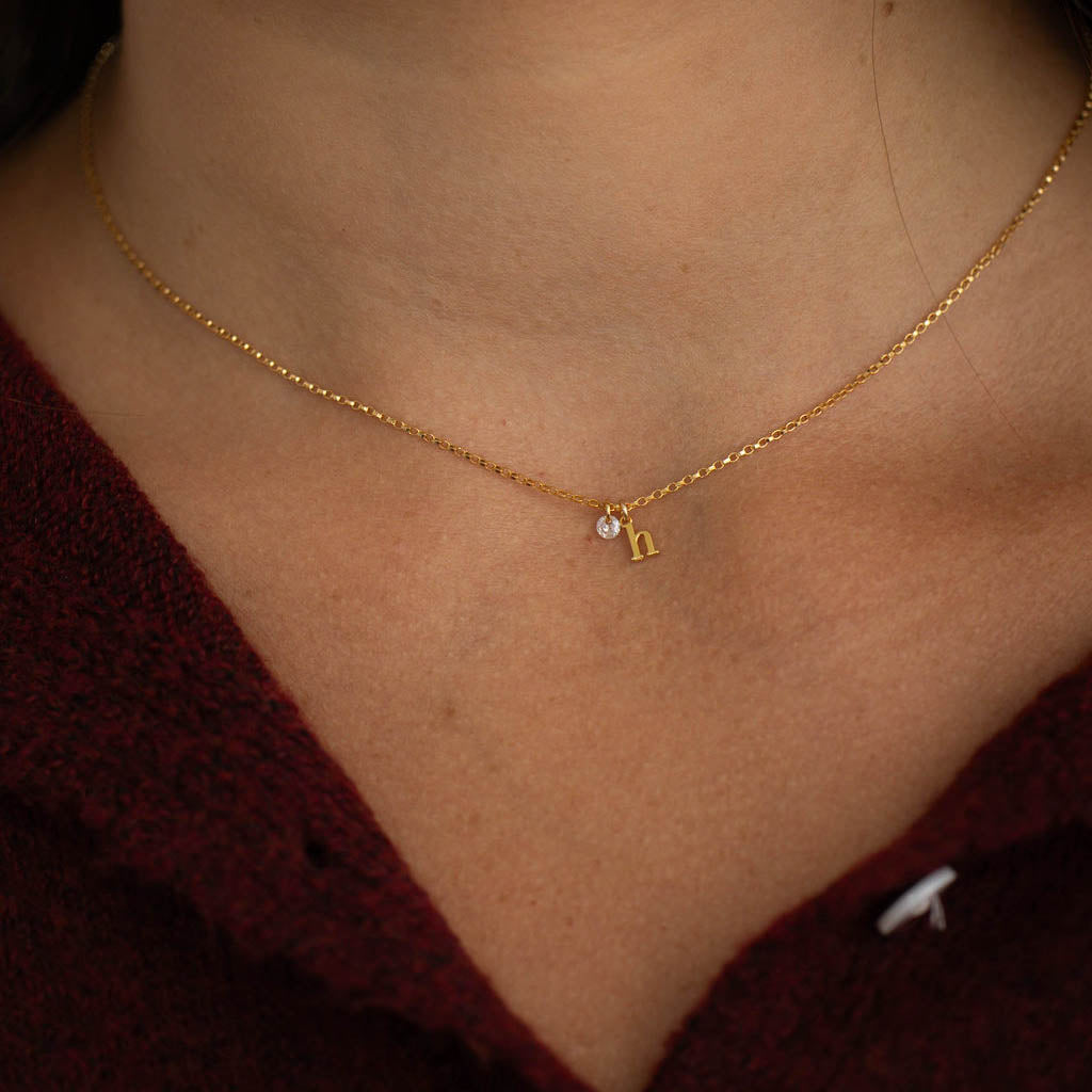 A delicate gold-filled necklace featuring a tiny initial and a small diamond charm. Lightweight, meaningful, and perfect for everyday wear—beautiful on its own or layered.