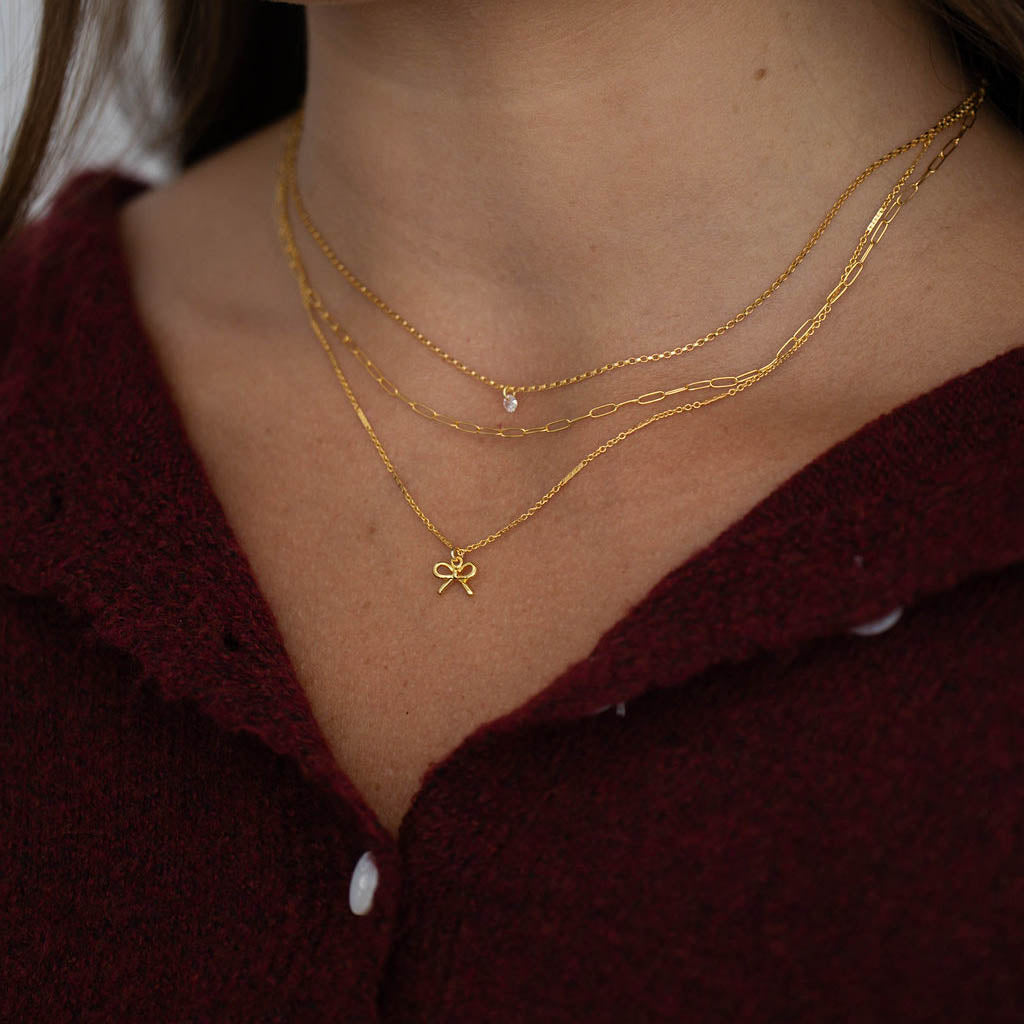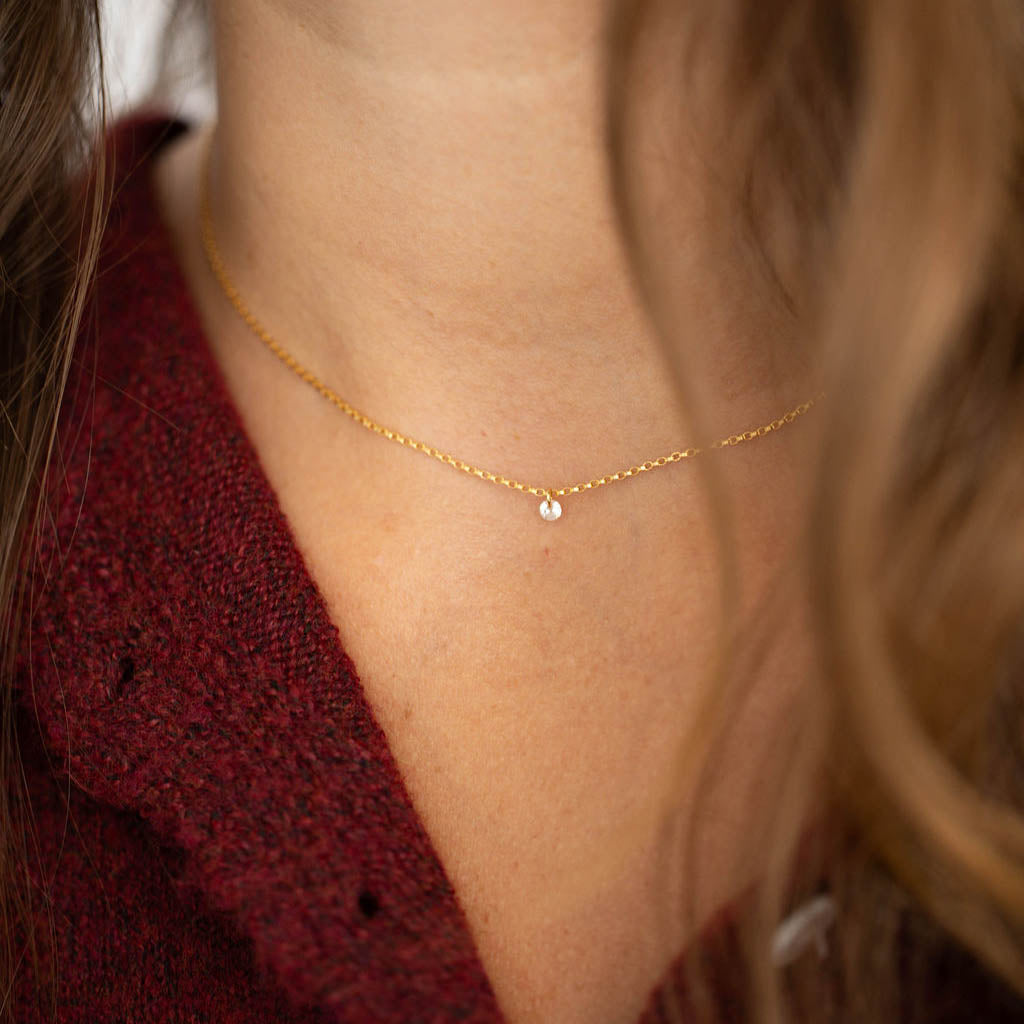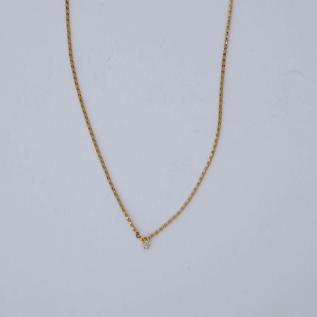 A simple, elegant gold-filled necklace featuring a tiny polished diamond charm. Light, durable, and perfect for everyday wear or effortless layering.