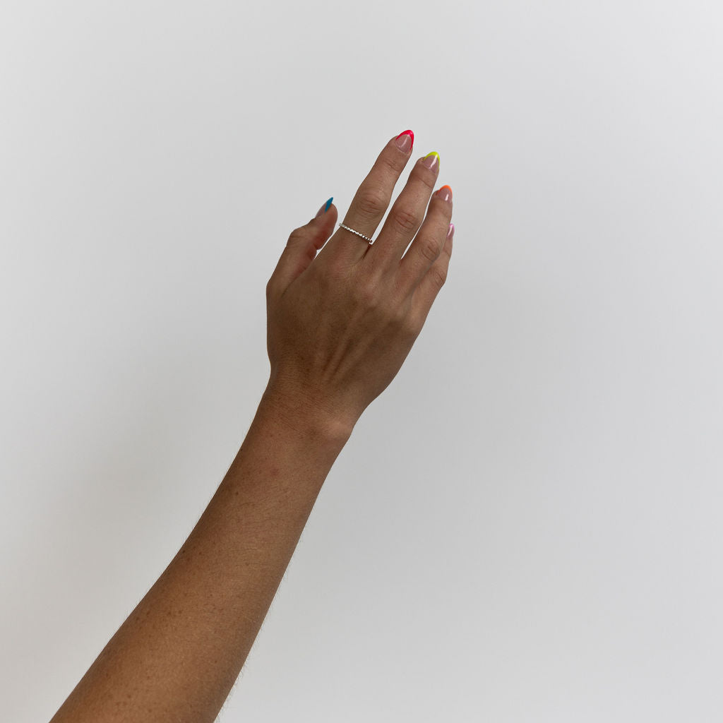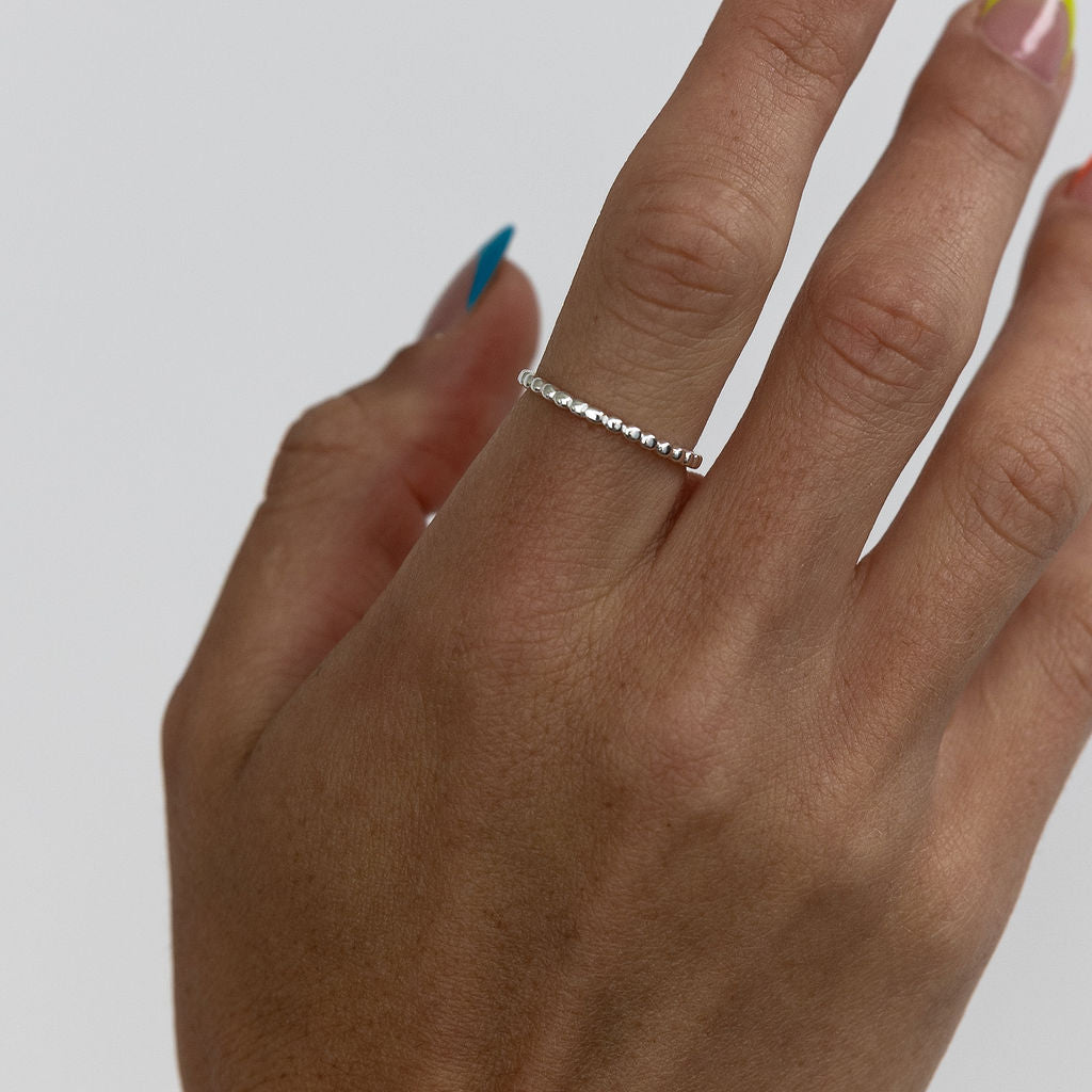 Inspired by our Kendall necklace, this Sterling Silver beaded ring is a playful blend of delicacy and boldness. Perfect alone or paired with other rings.