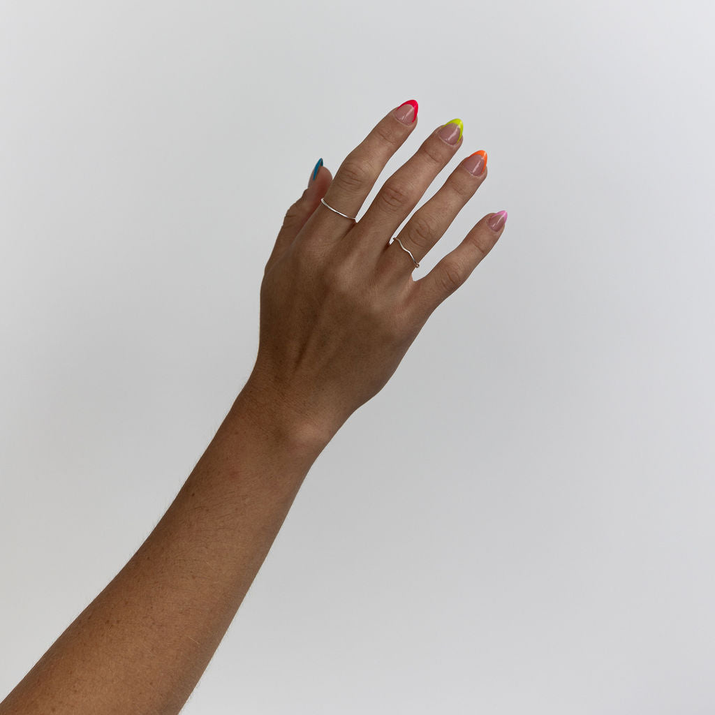 A subtle twist on a classic band — this dainty sterling silver ring features a gentle wave shape for a soft, modern look. Perfect for stacking or wearing solo.
