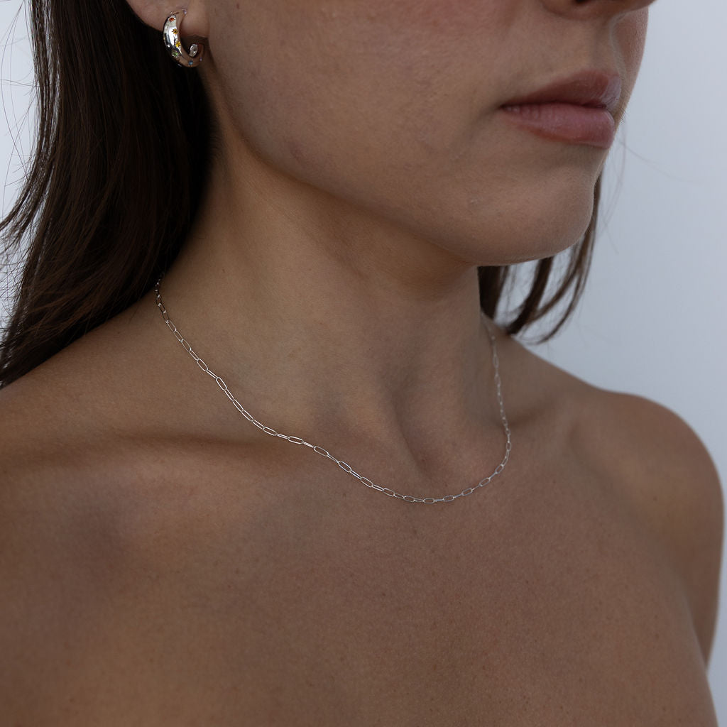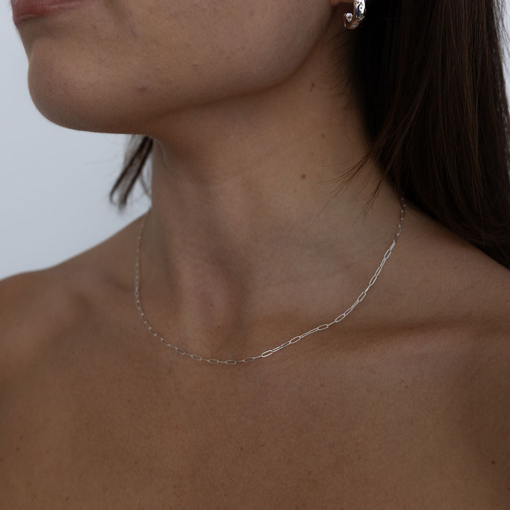 Introducing our top-selling Frankie Mini Necklace, a versatile and timeless style crafted with interconnected teeny tiny "paper clips." This is the ideal layering accessory—one you'll find hard to part with.