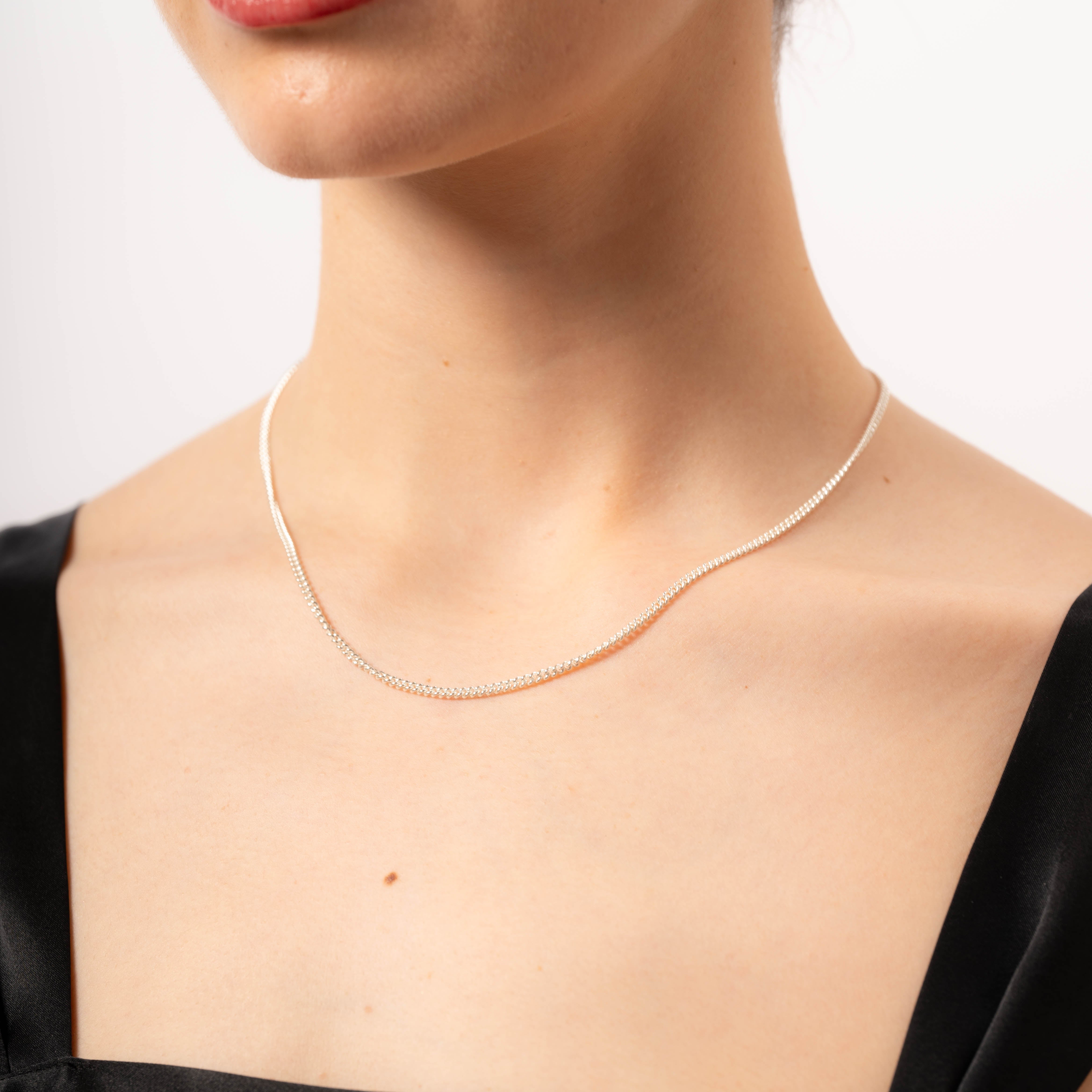 Introducing Luca Mini, a timeless mini cuban link chain crafted from sterling silver material, designed for everyday wear. Its versatility shines as it effortlessly compliments layered styles and is a perfect blend of bold and dainty.