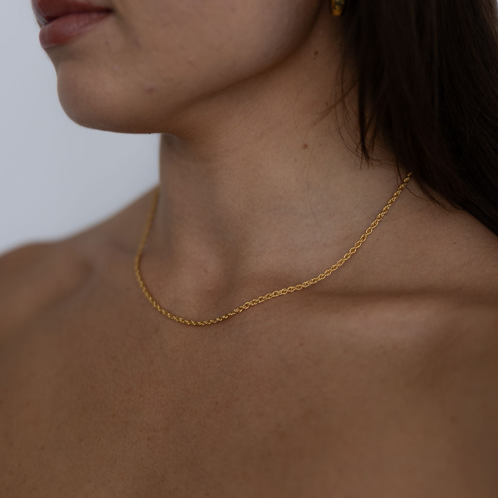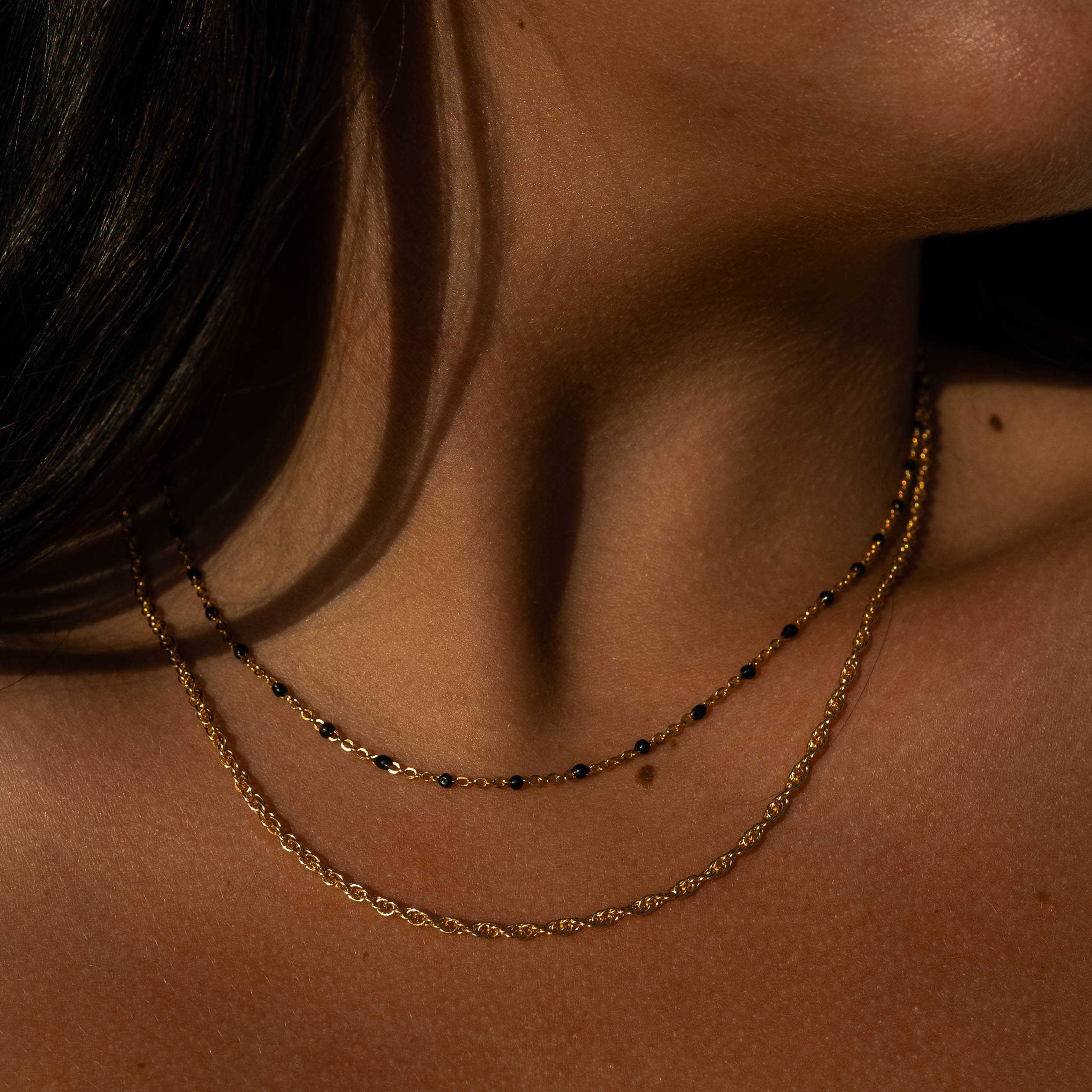 Meet Brooke, crafted from 14k gold-filled material, this rope necklace seamlessly transitions from day to night, offering a versatile elegance that complements any ensemble. Whether paired with casual wear or enhancing a formal look, its adaptability makes it an essential part of your jewelry collection.