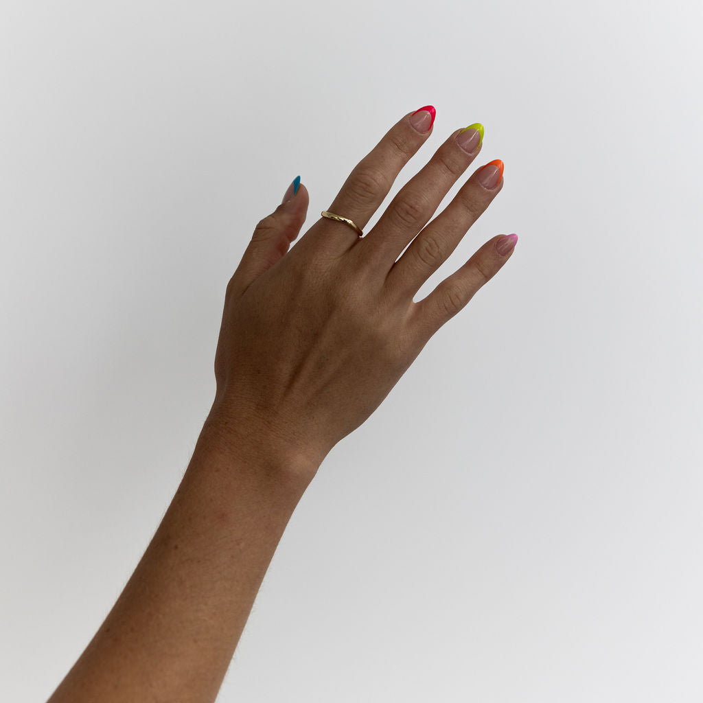 Timeless and polished, this classic gold band features a smooth, domed shape with a high-shine finish. A versatile staple that’s perfect for everyday wear or stacking.
