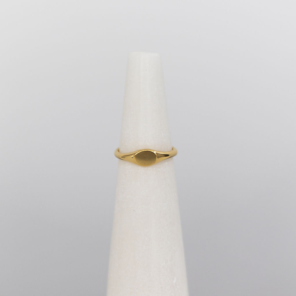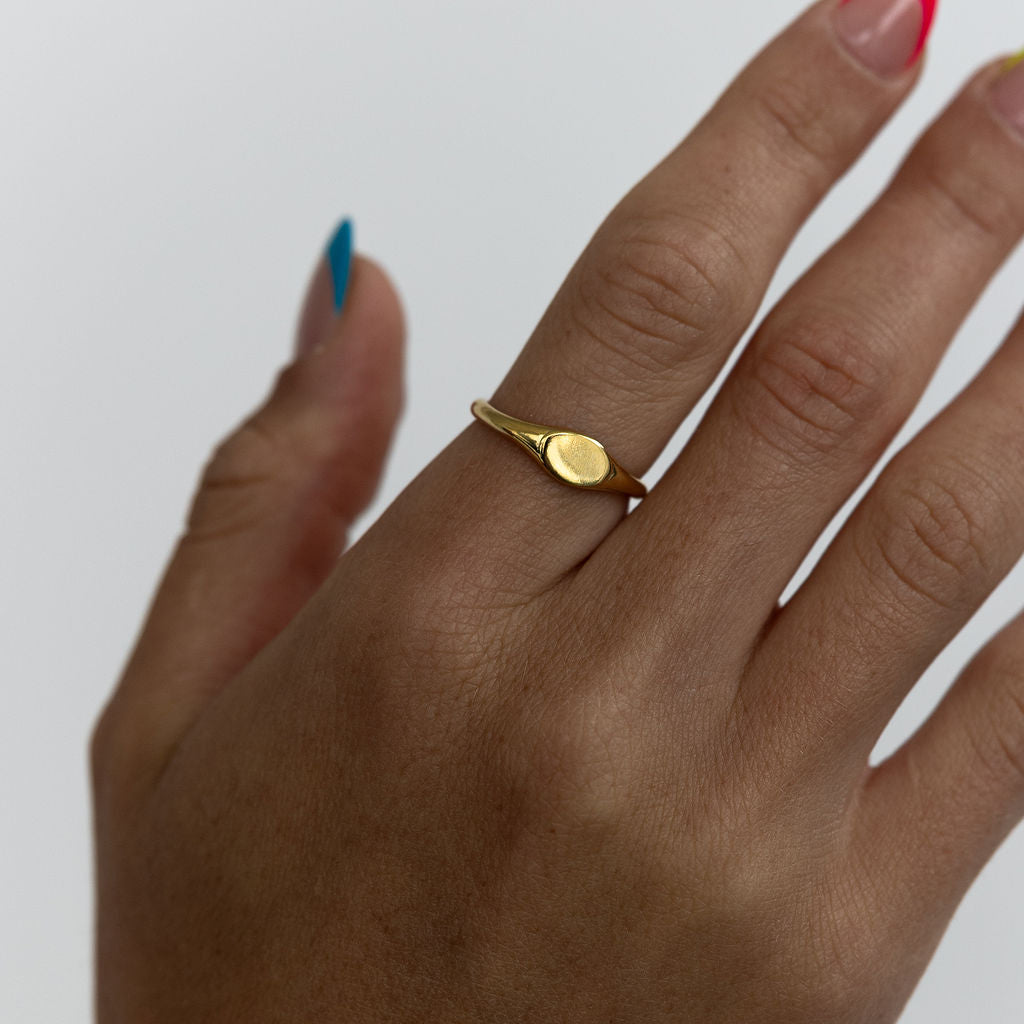A modern take on a timeless classic—this gold signet ring features a smooth, oval face with a sleek and minimalist design. Effortlessly cool and easy to style every day.